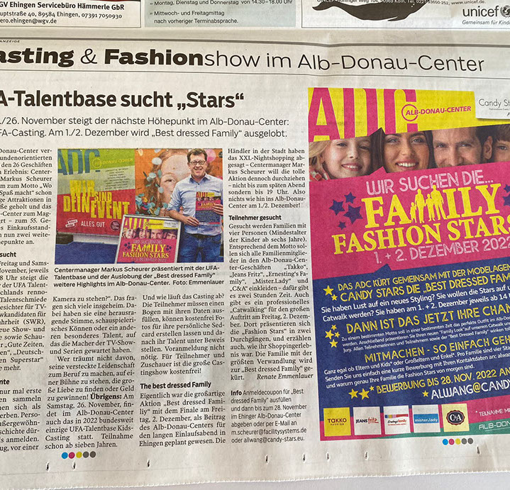 Bitte beachten Sie unsere diesbezüglichen Anzeigen im Center, in den Zeitungen sowie auch auf unserer Website.
